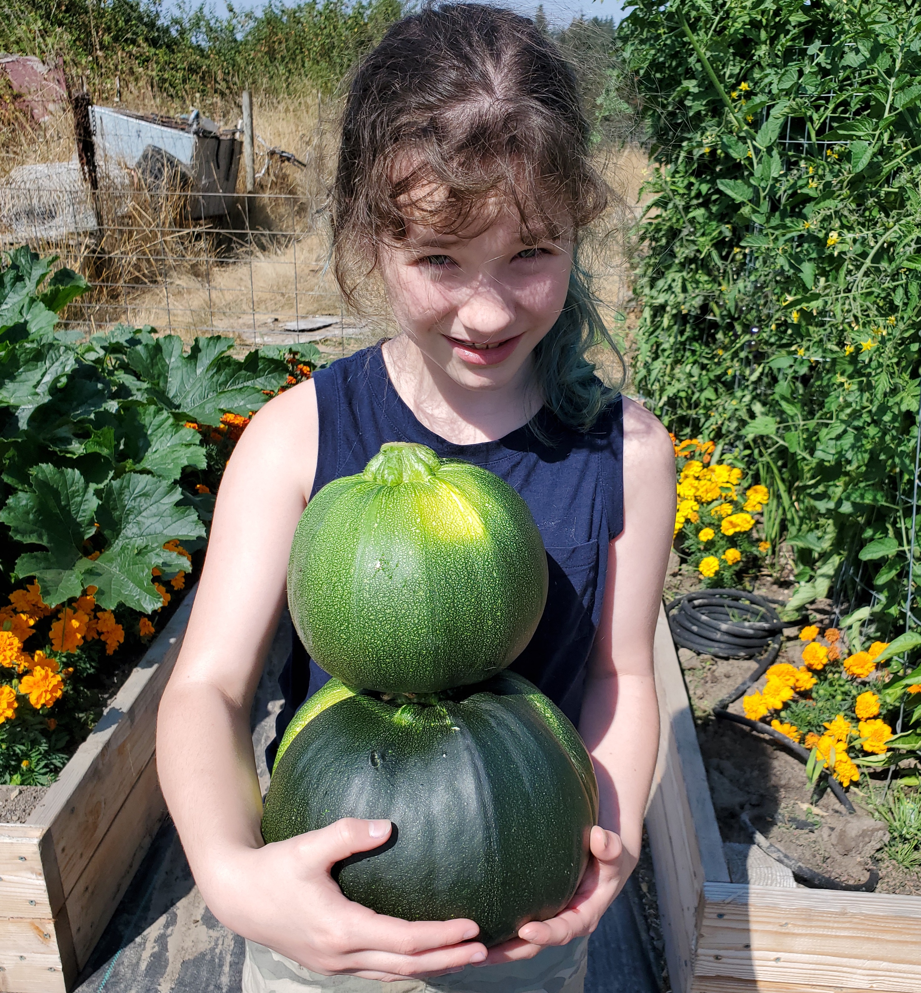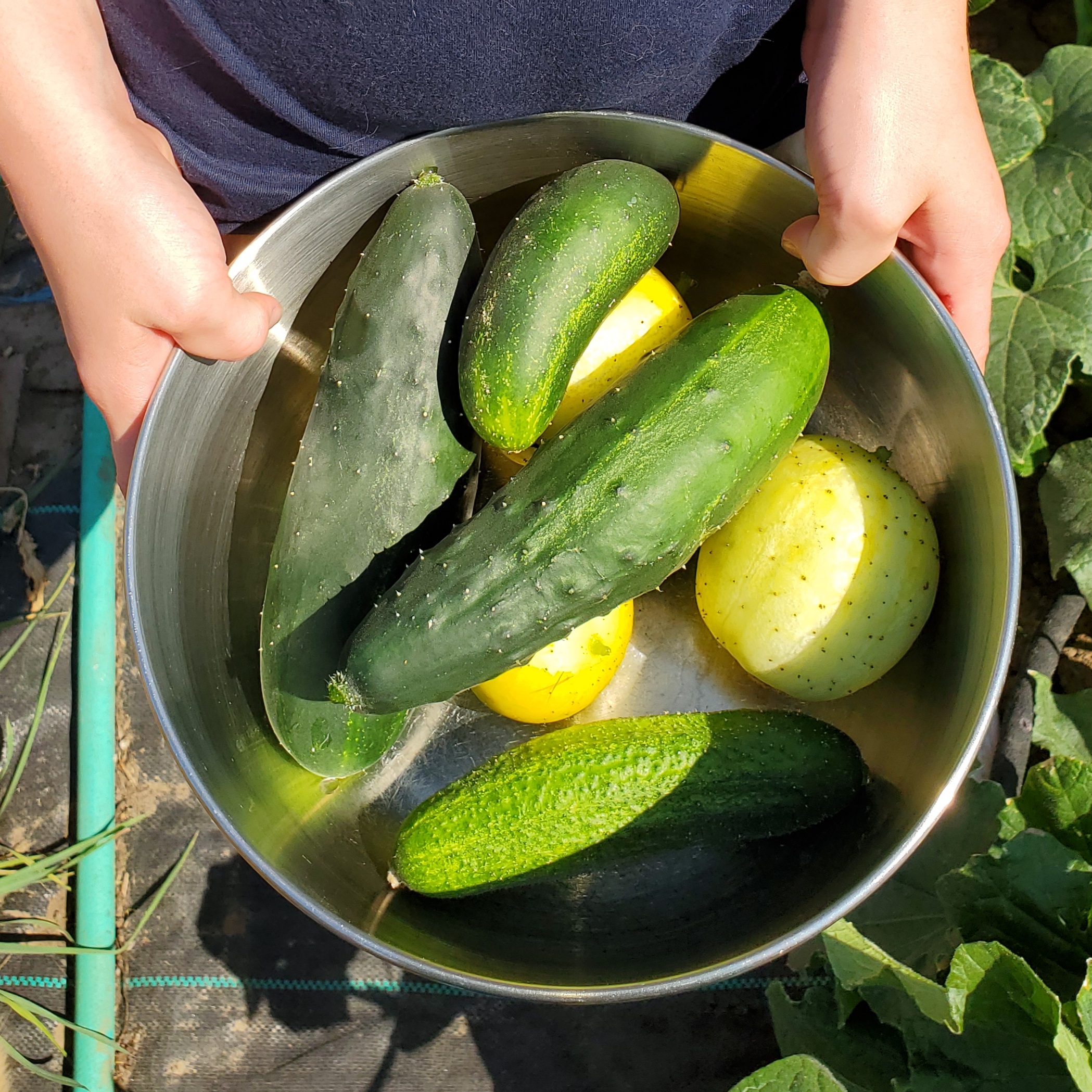 We accidentally let the zucchini get too big so they will make Zucchini bread, oh darn haha. The cucumbers are coming on strong but the zillions of tomatoes are still green as green can be. We have First Lady tomatoes but even they took a break to stay green. Onions look to be of good size soon hopefully!