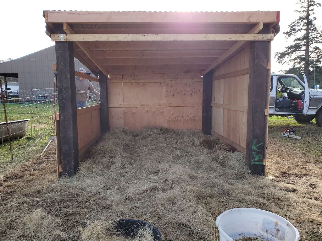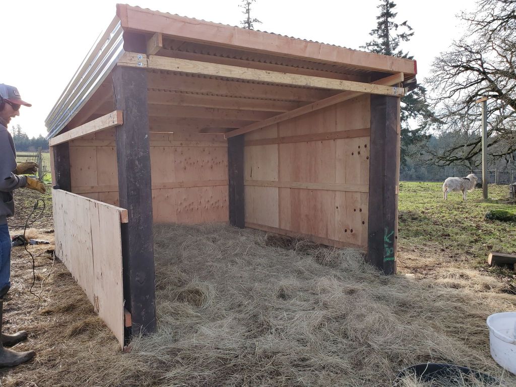 The rams and llamas needed a small lean-to as well so Shane and Amy got one built!