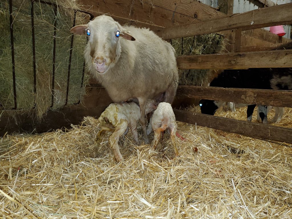 Daphne, a Registered St Croix ewe, had twin 8lb Boys this morning. We bought her in August knowing she was bred during a ram escape so unsure who the sire is. Might make Commercial breeding stock for those who don’t care, or they’ll be market lambs.
