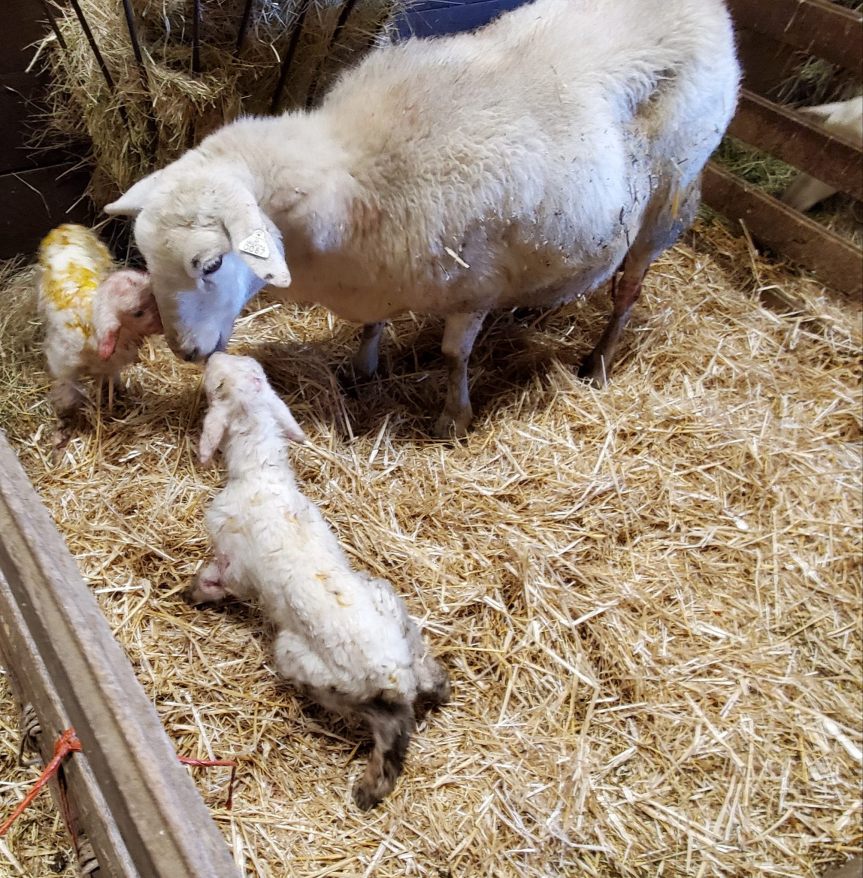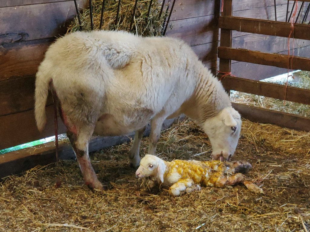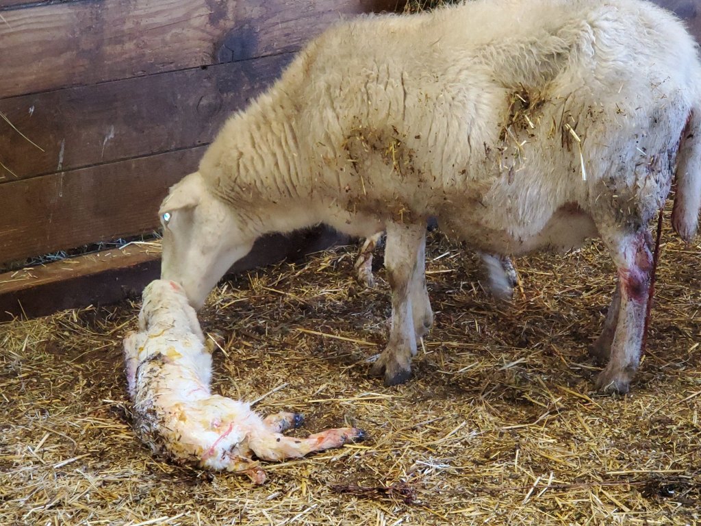 The 12lb ram lamb was breech with rear legs extended and had to be pulled all the way out, much to the pain of dear mama ewe!