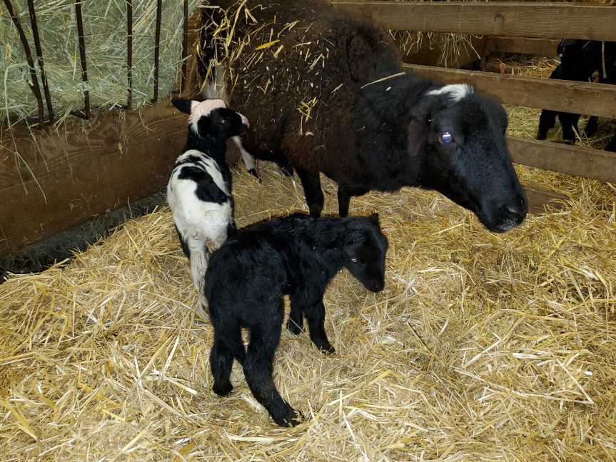 Shane really wants us to keep the solid black lamb with short ears. He wants to call him Pappy after Pappy Boyington from the Black Sheep Squadron. I told him it won’t be tame enough so not going to happen haha.