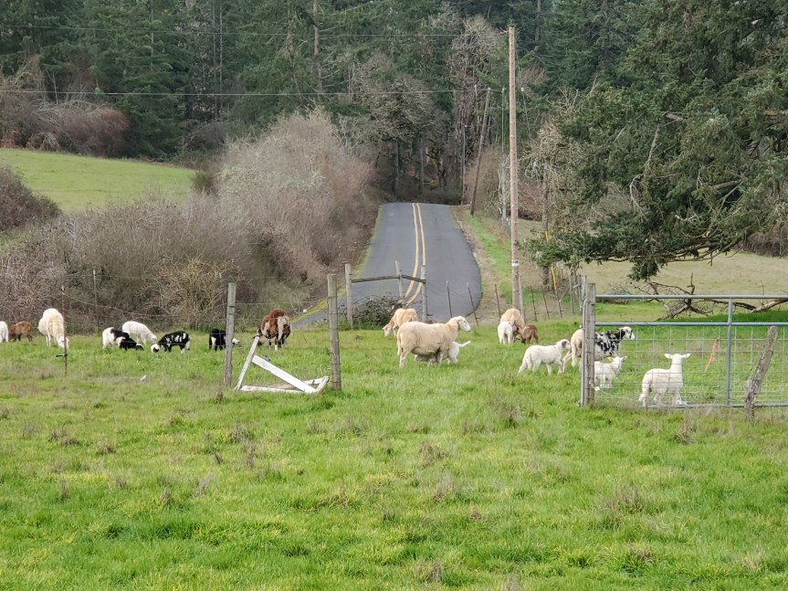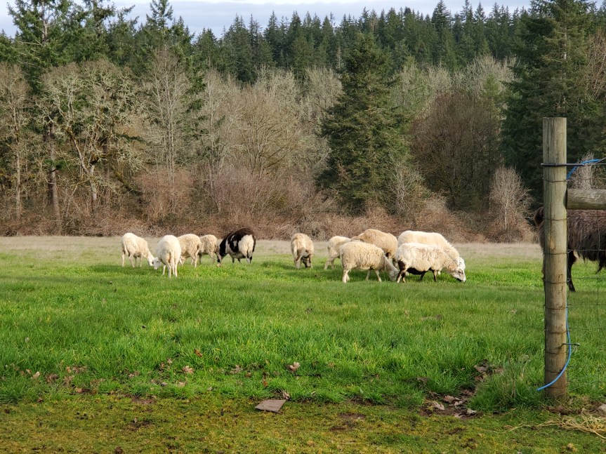 Friday the 18th, the sheep were let out to pasture a couple weeks early as our hay supply is dwindling. They were most happy about it too! The two St Croix yearling rams are out in our Orchard by the driveway, the moms with babies are out by the road in what we call the “road pasture” (imaginative I know!), and the yearlings and new ewes are out in the “cemetary pasture” with the horse and two llamas (this pasture goes into the woods so coyotes are more of a problem hence the protection detail). It’s called that due to an old pioneer cemetary on the neighboring property and this pasture is the closest to it.