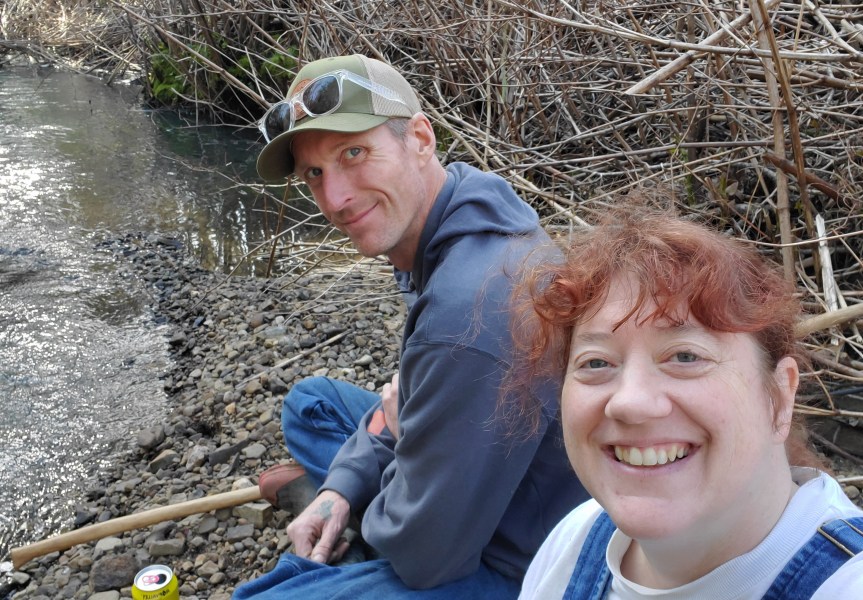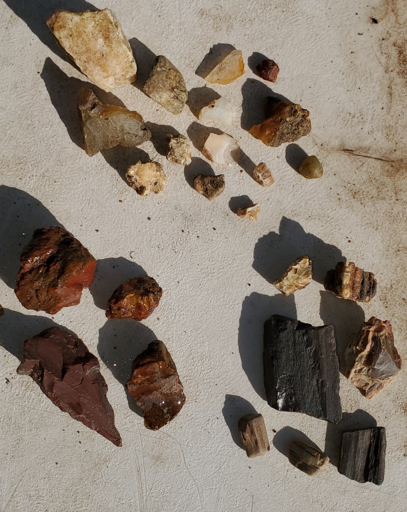 Today, Shane, the dogs and I went for a small woods walk and sat by the creek for a little while. Found a few rocks while we sat too. Such a warm, beautiful day. It was so relaxing down there!