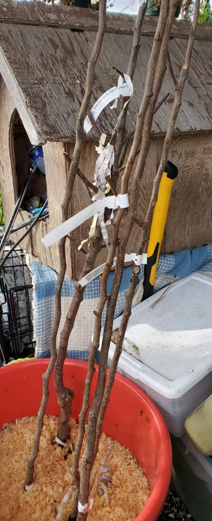 I’ve been obsessing over a hand-drawn map of the orchard, planning what trees go where and what kind of nitrogen fixers to put in as well. Ceanothus, Goumi, and maybe Silverberry are the main choices. I have one autumn olive too that I might plant out there and hope it behaves and doesn’t spread. I was going to get Seaberry but from what I understand from a friend involved in the Home Orchard Society out here, it can spread somewhat aggressively. It has thorns too so I think I will pass. We have a couple new Forest Pansy Redbud trees but I keep hearing conflicting reports about whether or not they fix nitrogen. I think I will still plant some Redbud out there though and see. Maple trees and Apple trees are Dynamic Accumulators (meaning they bring nutrients up from down deep and when the leaves fall, those nutrients become available to the surrounding vegetation). This means I will plant some maples along the fence line and start the orchard about 60 feet away. The Apples will be jumbled up with Pears, Peaches, Plums and Cherries in that section. The only trees we have out there now are a Charlotte Peach, Ubileen Pear and a Gravenstein Apple. We have new trees of Brooks Plum, Bartlett Pear, Ambrosia Apple, and Pink Lady Apple going out there.
