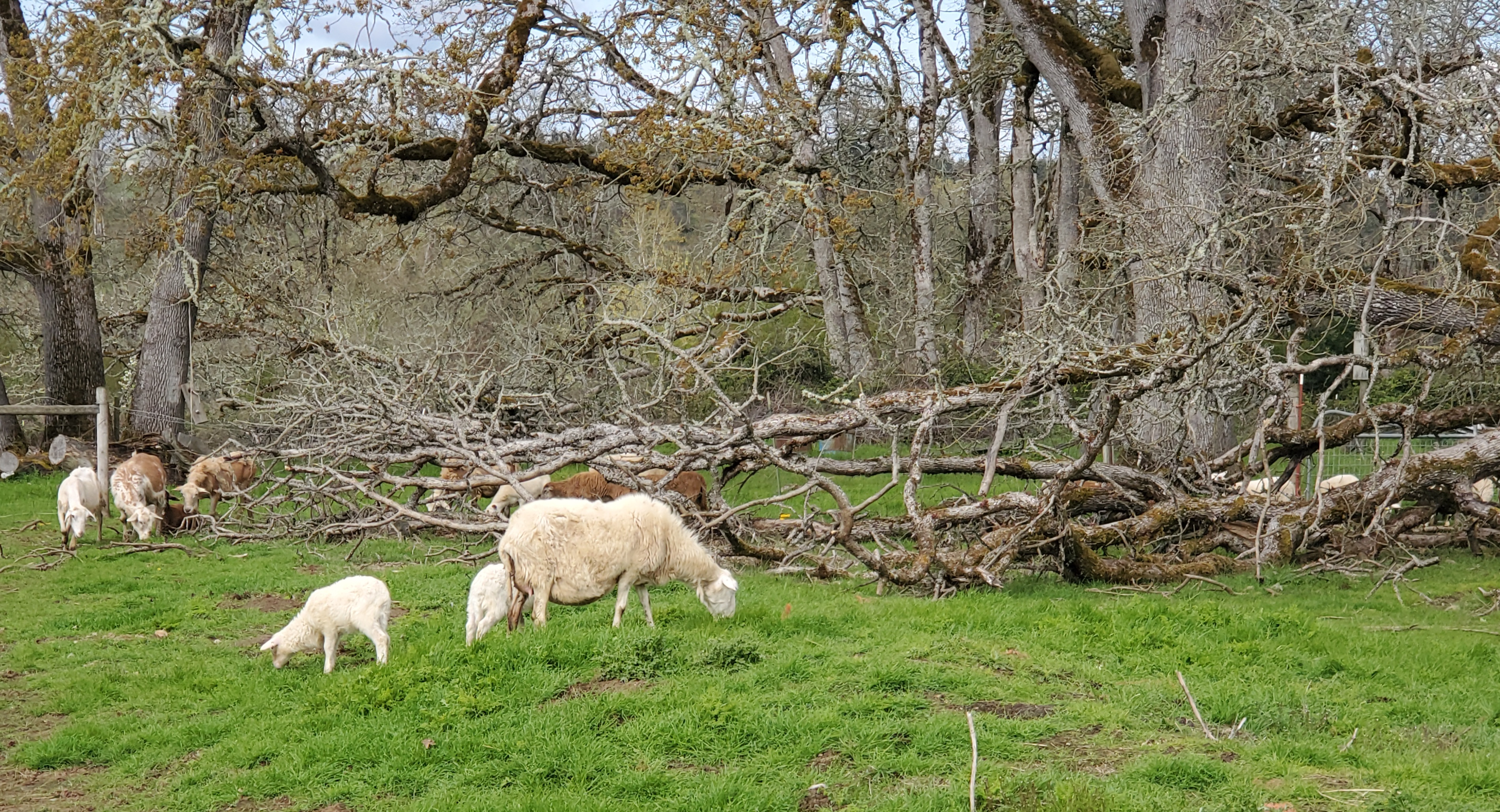 Morganna and I castrated all but 4 of the ram lambs this morning before the blog went out. The ewes and their lambs went into a new small area to eat grass so the lambs could feel sorry for themselves without getting eaten by coyotes. We’ll open the gate to the Old Barn Pasture tomorrow.