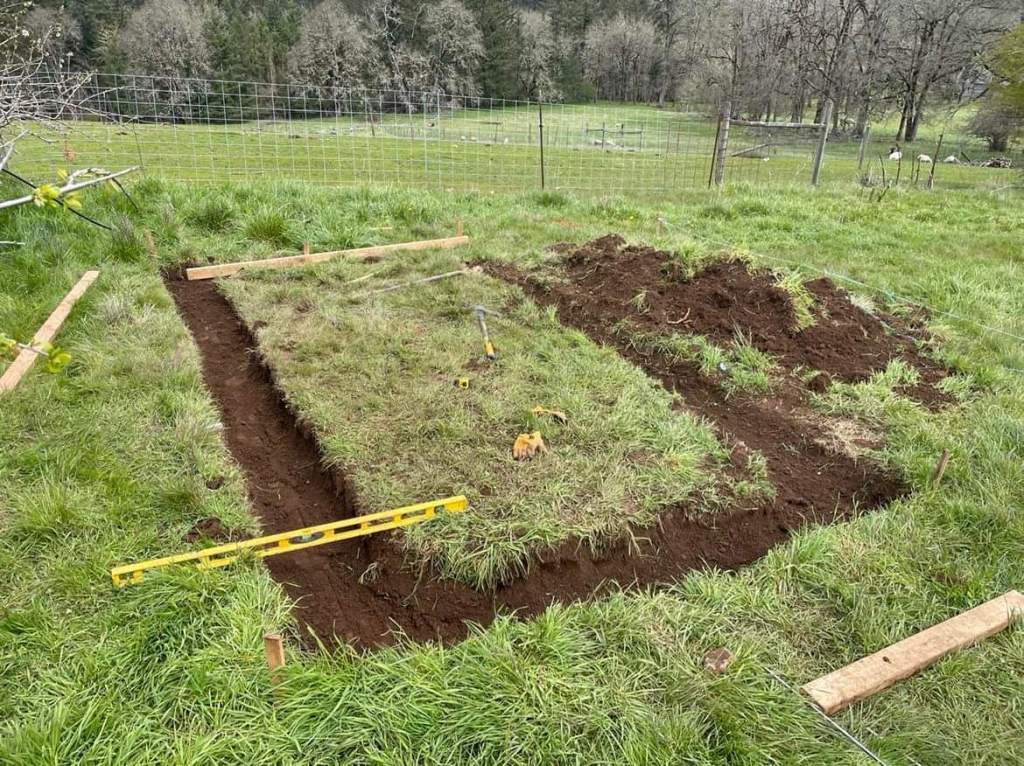 Shane is using railroad ties for the base of the coop. The coop will sit on these and be bolted down to prevent it for blowing over. It’s coming along!