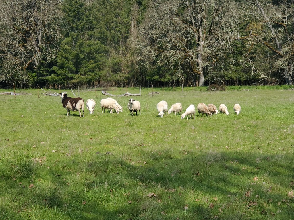 When I went for my walk on Sunday, I snapped a couple pictures of the yearling ewes and new ewes out in their pasture out enjoying the nice weather! Some are starting to shed so look a little ratty.