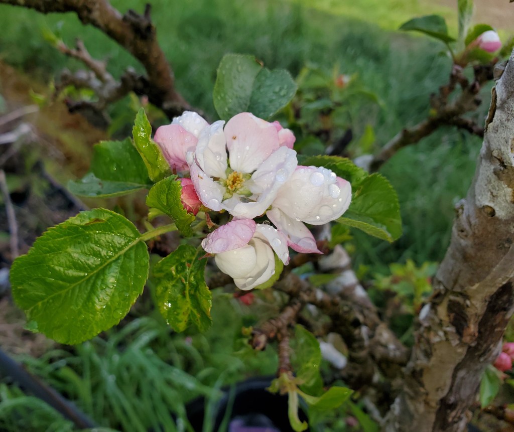 Pictured in this slideshow: Chives, Peony, Lavender, White Currant, Beauty of Moscow Lilac, the old lilac in the back yard, and our Columnar Apple Tree on the patio.