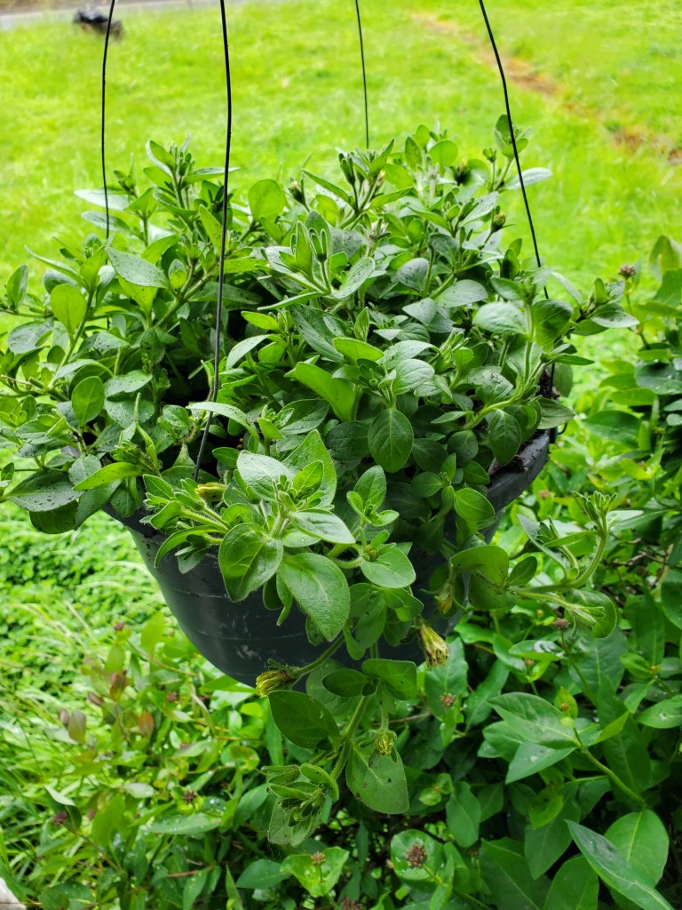 Most were a little dry so are sitting out in the rain for a day before I hang them up. The Petunias get rained on where they are so I went ahead and hung those.