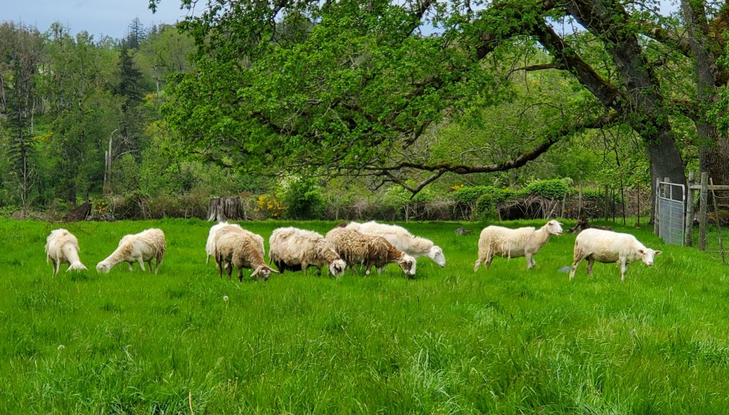 Pregnant ewes have been moved in the front barnyard to eat it down. May turn those into the back yard to eat down the grass there too! I just don’t have the hay to keep sheep in the barn any longer than I have to! In fact I’m a little worried what lambing in June is going to look like too without hay or straw (I have 1 bale of straw left!). The older ewes should be fine coming in for shots and what-not and being let back outside. The yearlings start lambing later so I’m hoping the new hay will be in or coming in at that time!