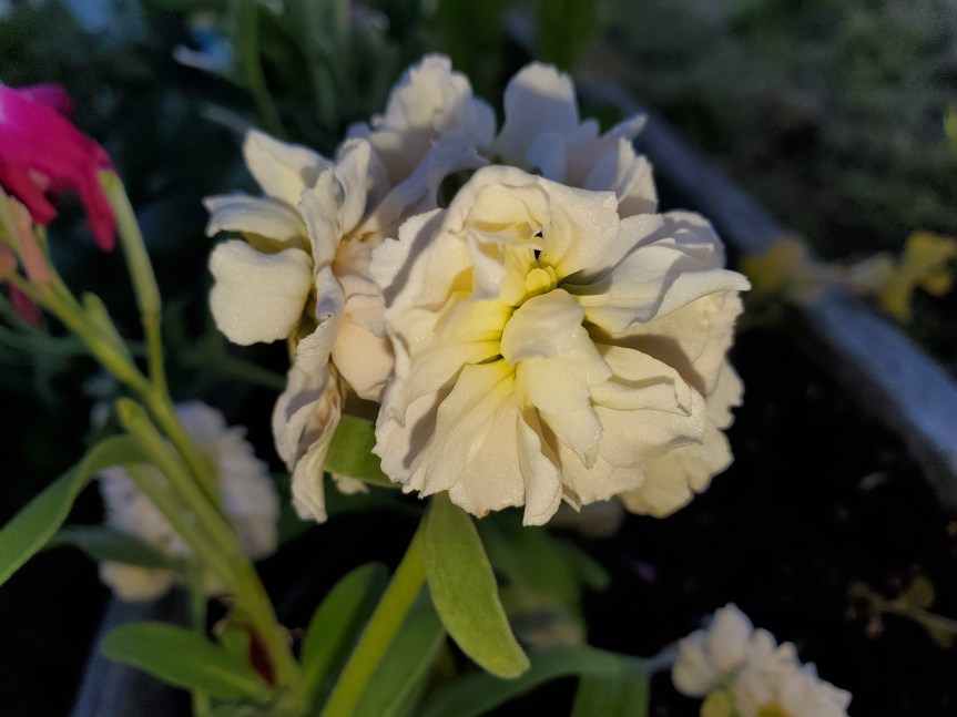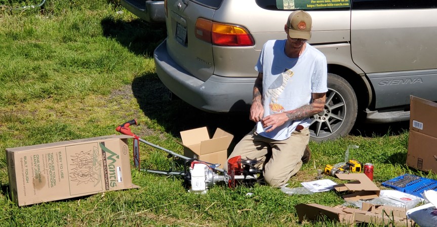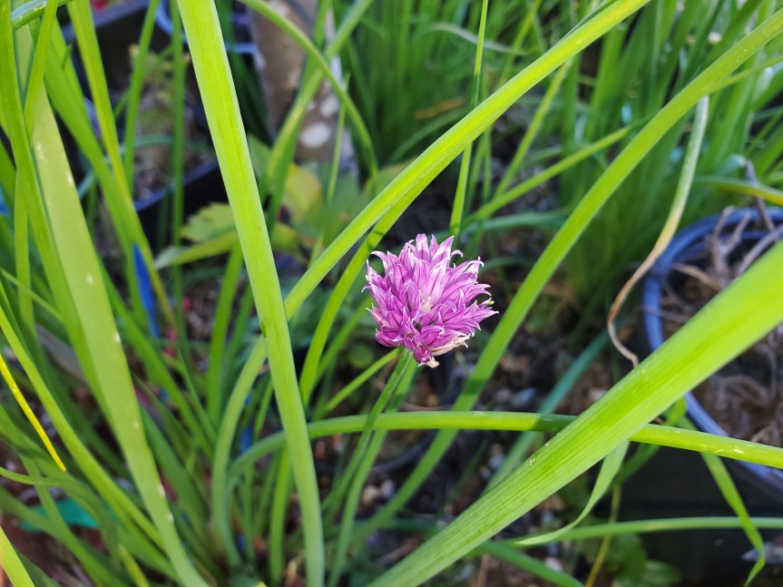 Shane’s been out with the weedeater cutting grass. It’s far too thick for the lawnmower right now! The sheep will have to come into the back yard to work on it, but the front yard and road we have to get down first. The veggie garden is getting worked on this next week so will be updated in the next blog. I took some flower pics and one of Shane putting together our new small tiller for the raised beds.