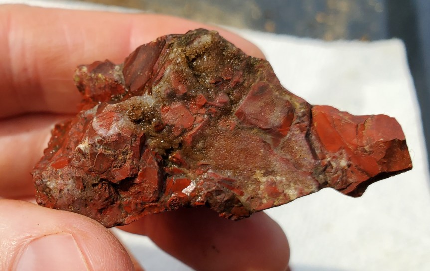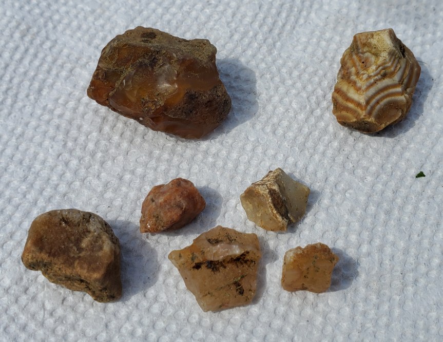 The rocks were really fun this trip too! The Jaspers had crystals all over and through them, found a cool zebra striped agate and a nice dark Carnelian among some smaller ones and petrified wood.