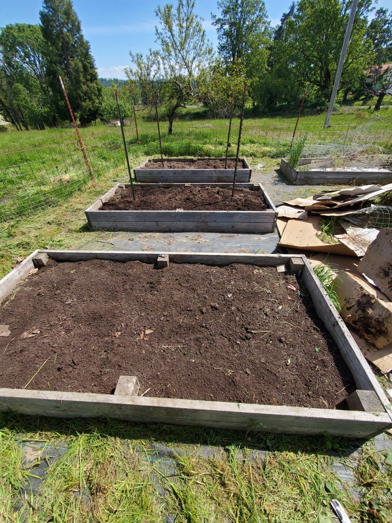 The furthest raised bed will have Tomatoes, Onions, and maybe some Basil or other herbs and Marigolds. The middle bed might be Zucchini and Cucumbers. The closest bed will be Beans, Carrots, Radishes and some Nasturtiums I think. I’m still working out what we want to grow. I’ll probably plant it this coming week.