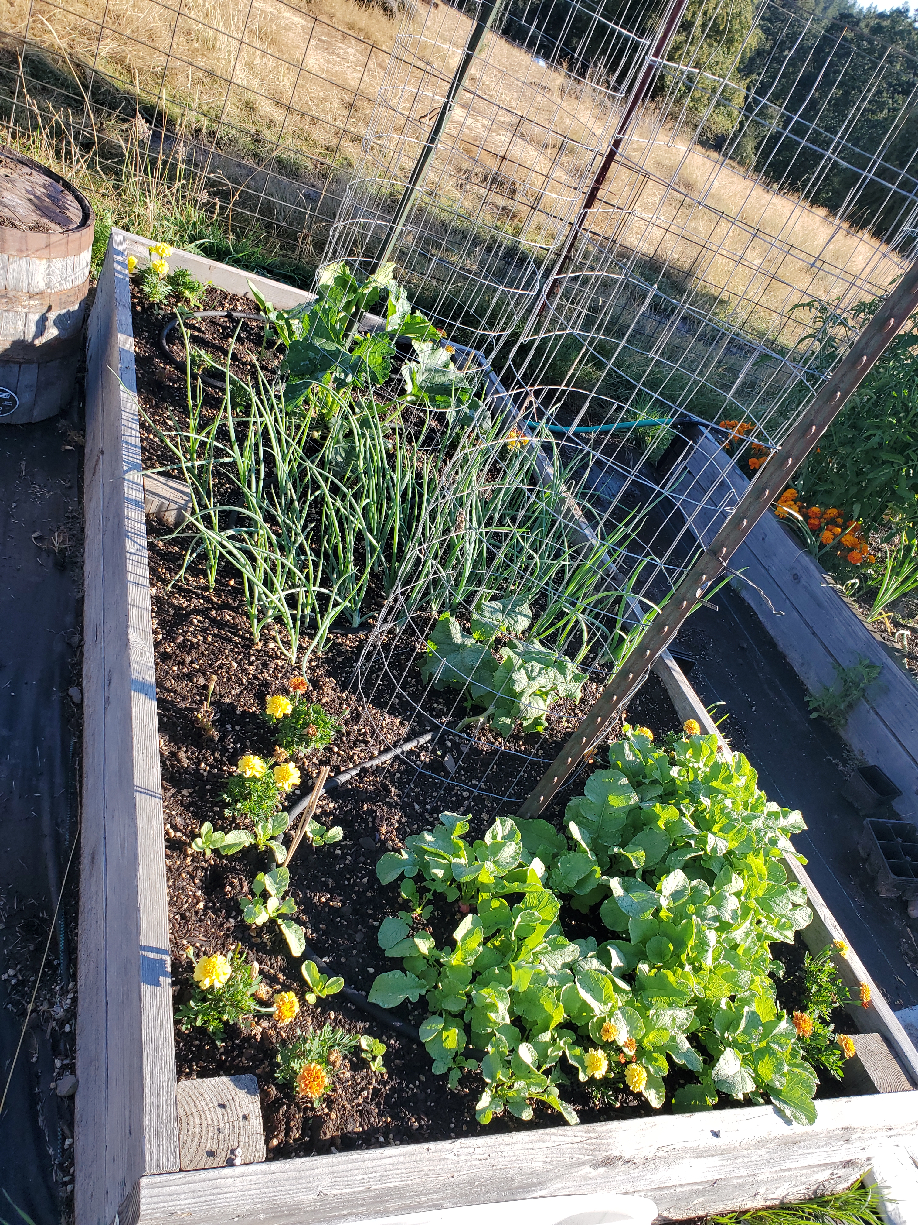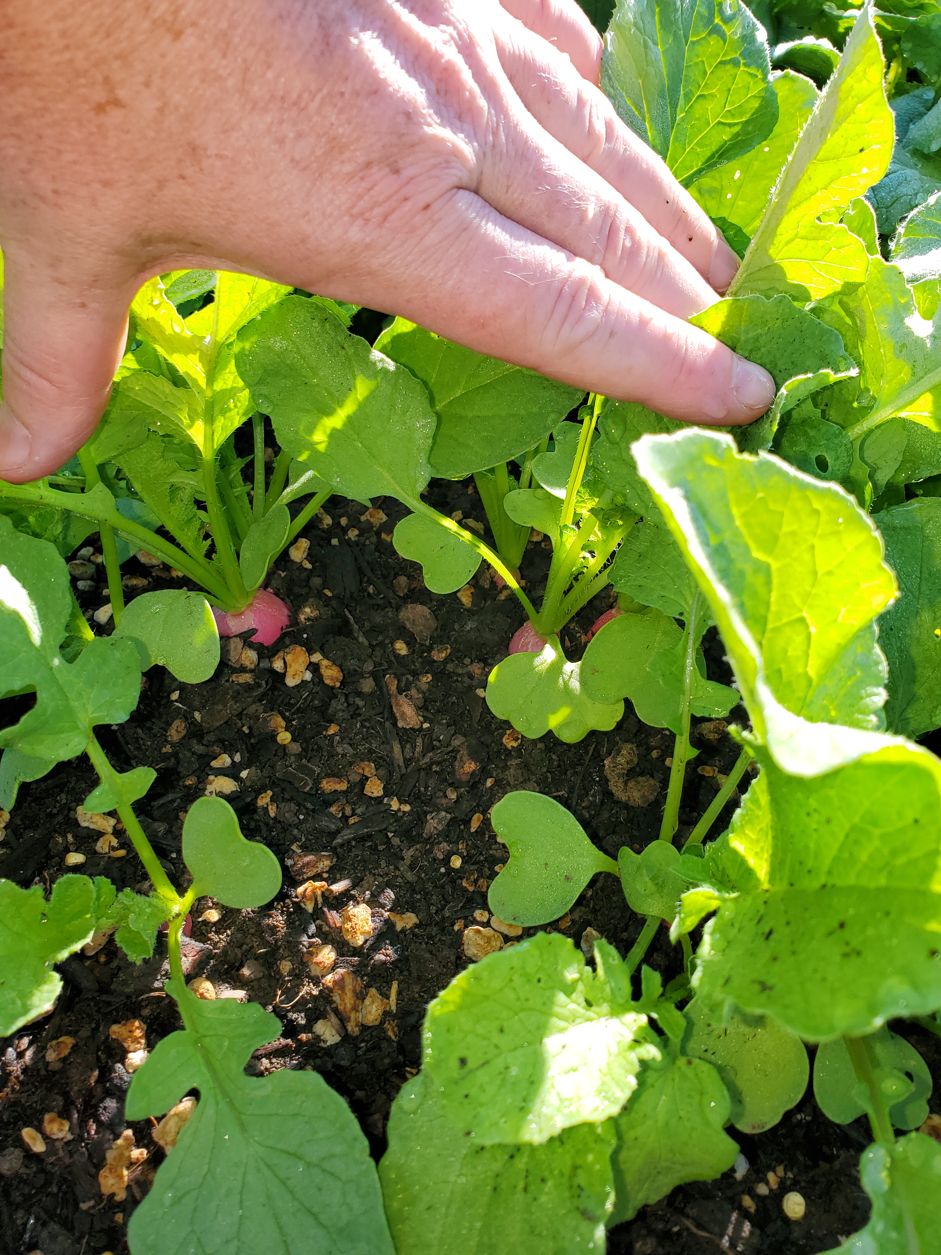 Morganna was noticing the Radishes are almost ready to harvest. I’d like to wait a few more days though as they’re pretty small. Also have a Zucchini about ready to harvest!