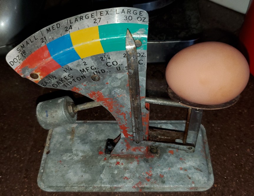 One of the Brahma hens laid her first egg finally (at least I think it’s her first!). It dwarfs the other eggs in the carton!