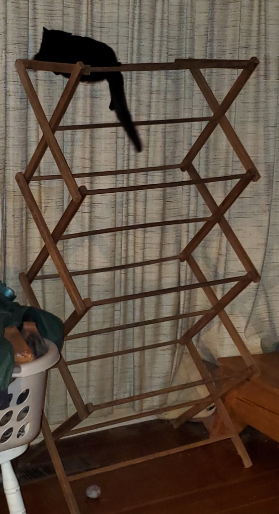 Then later the kitten, Briar Rose, decides to go climbing. Such a turd! Briar was rescued as a baby dumped along the road not far from here. The lady who found her couldn’t keep her so I gave her a home here for Shane since he lost Magic. She turned out to be more my cat than his but she’s quite the fearless character. There’s almost no chill in this cat. She goes non-stop.