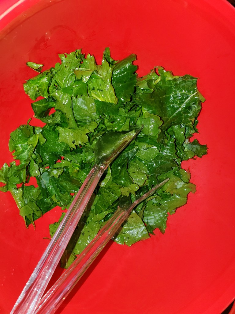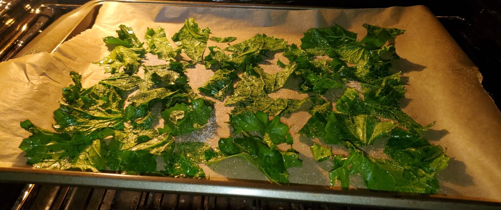 The other day I was out in the garden seeing if I had any tomatoes I could salvage and also found 2 HUGE zucchini I had forgotten about and noticed how big the Kale was getting. Spur of the moment I decided to get my daughter’s help to make Kale chips since that was part of the reason we grew the Kale to begin with! They turned out pretty decent though I did buy some Season Salt for the next batch we do as the Garlic Powder and regular Salt was rather Meh. They tasted a bit like Brussel Sprouts. I have a lot more in the garden to play with. I’m leaving the center stalks of the plants to continue to produce more leaves too. Anything too old I give to the chickens. Kale is super high in Vitamins C, A, and K so great for us AND our livestock. One thing I’m tempted to do in the future is make the Kale chips with the Seasoning Salt and then crush them up really tiny so they can be sprinkled on baked or mashed potatoes! The Irish have a dish called Colcannon that blends Kale with potatoes, but I think I would rather sprinkle on the Kale and not overwhelm the delicious, buttery potatoes.
