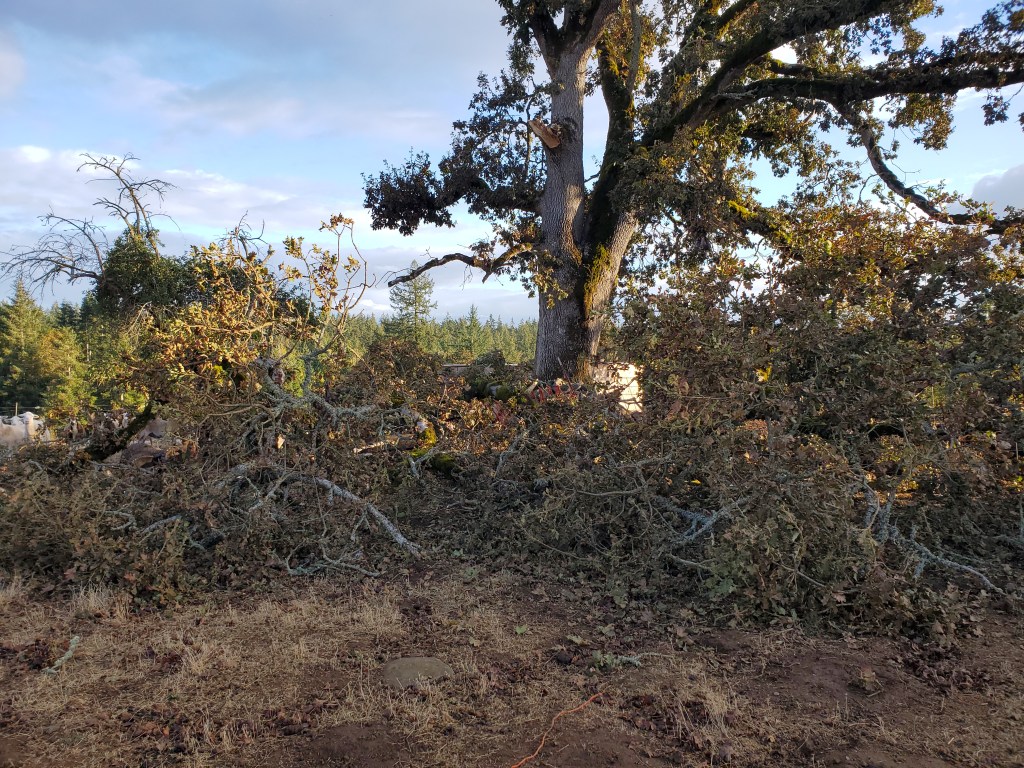 Some scary news happened the other morning as well when another huge branch fell out of the big oak tree in the barnyard. It crushed a cattle panel when it came down but fortunately the pregnant sheep weren’t under it!