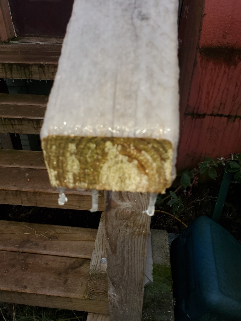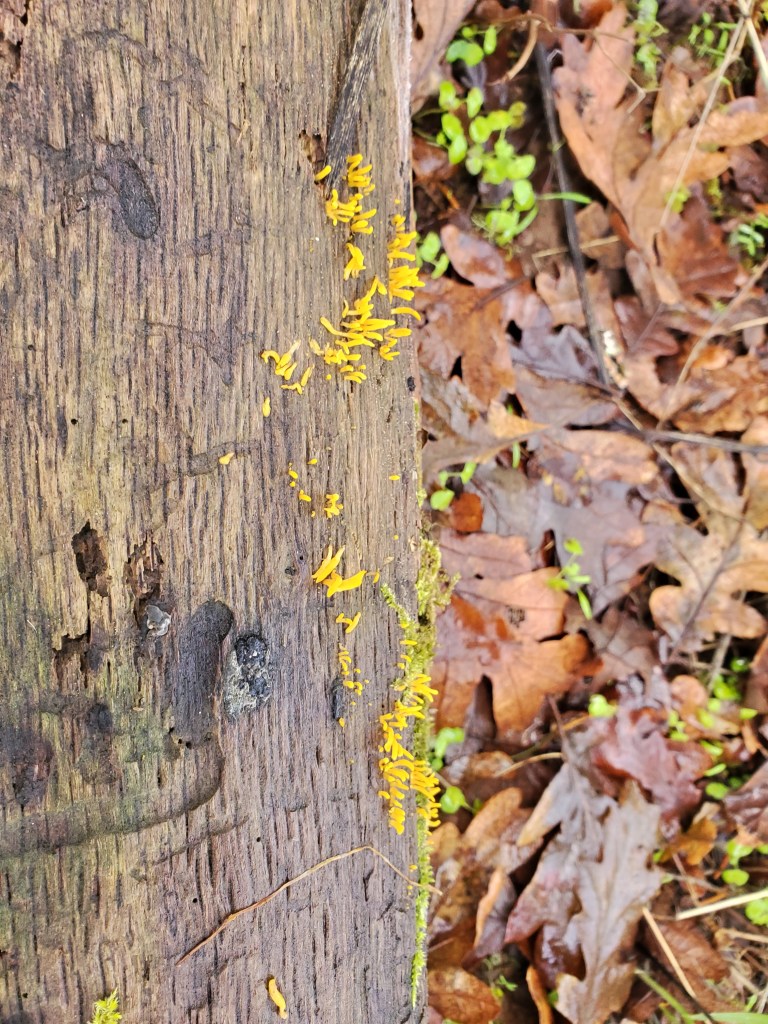 Pictured: Hairy Frost coming out of a piece of dead wood. Apparently this is caused by a fungus and is only found at the 45th parallel around the world!