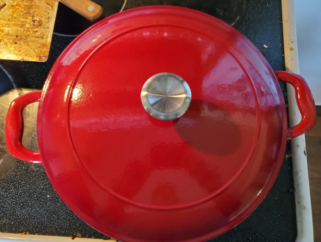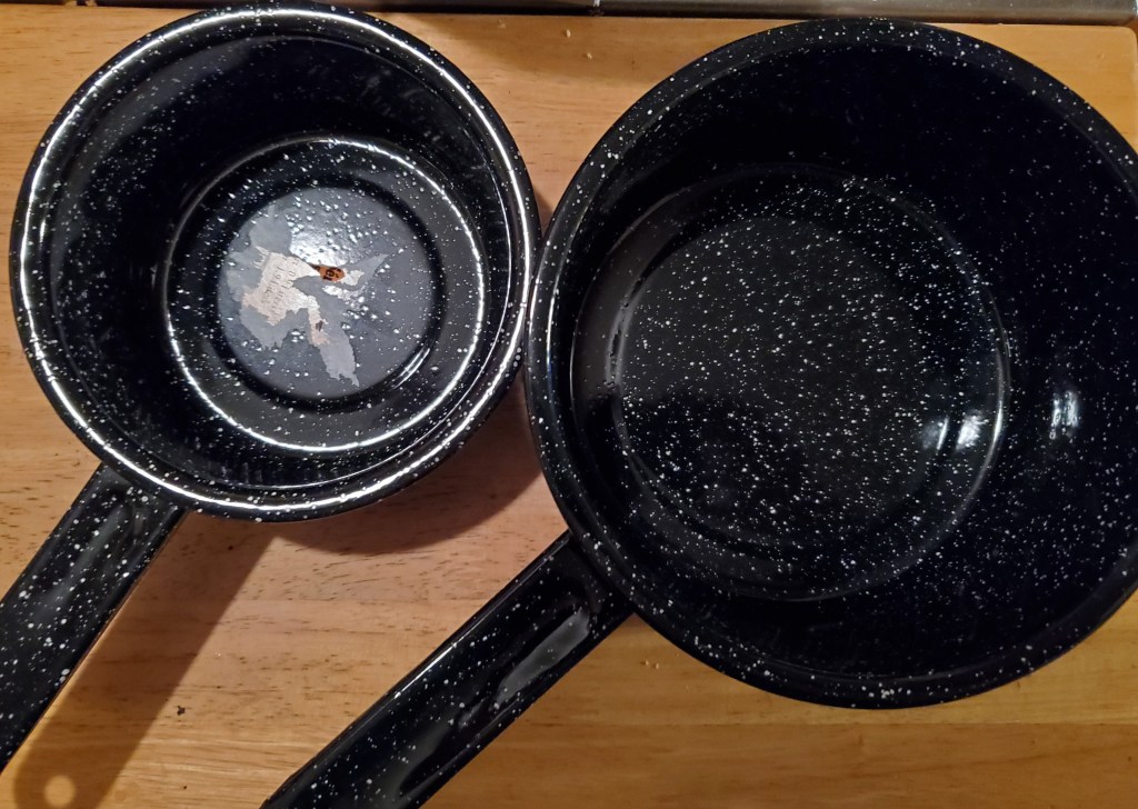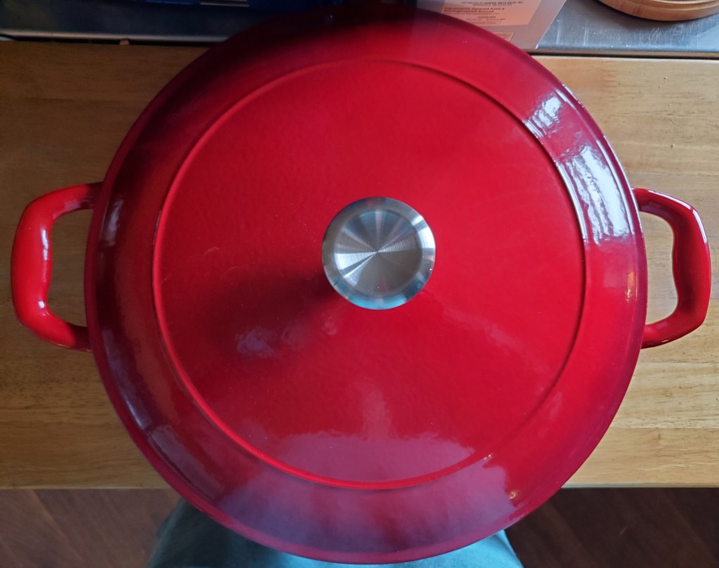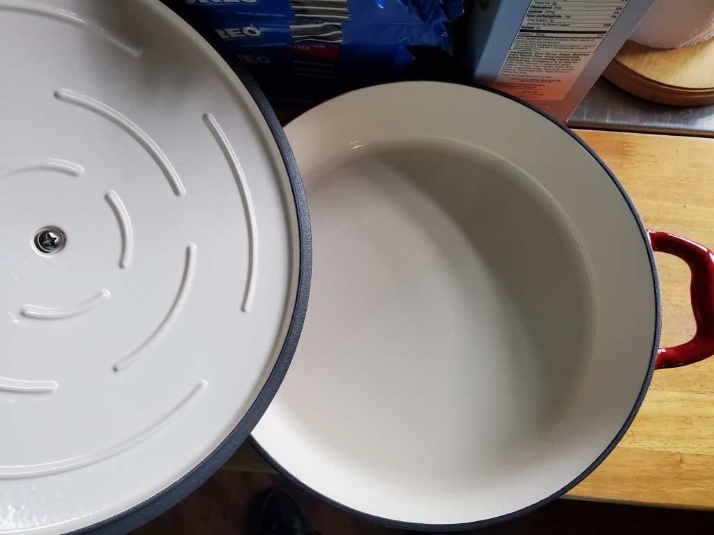 In our mission to rid our kitchen of anything with Teflon, I bought this pair of GraniteWare pans. A 1 quart and a 2 quart for making soup or boiling a couple eggs, etc. My new 4 quart Tramontina Enameled Cast Iron Braisier also came Monday! Not as deep as I’d thought it would be, but I still love it! I want a Dutch oven next though!