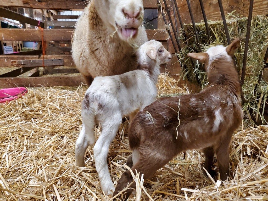 As of today – 19 lambs out of 11 ewes. Purebred St Croix = 1 ram, 6 ewes. Crossbred St Croix/Katahdin (mostly) = 3 rams, 9 ewes.