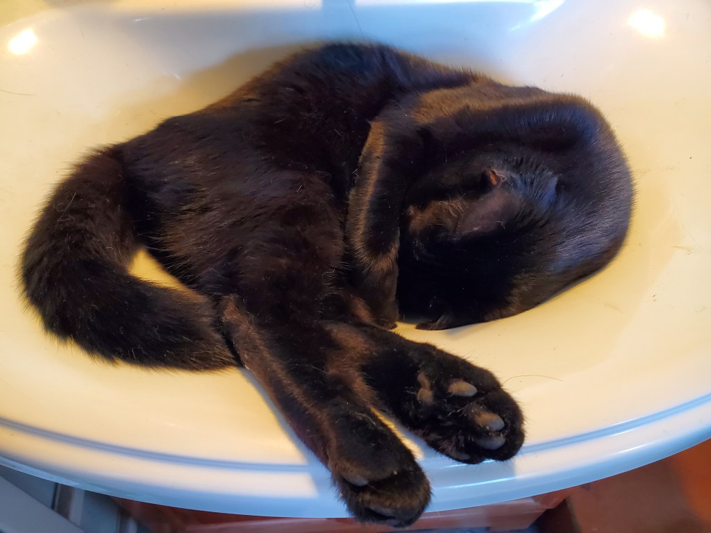 Kitty Evil sleeps in the sink while I bathe haha.
