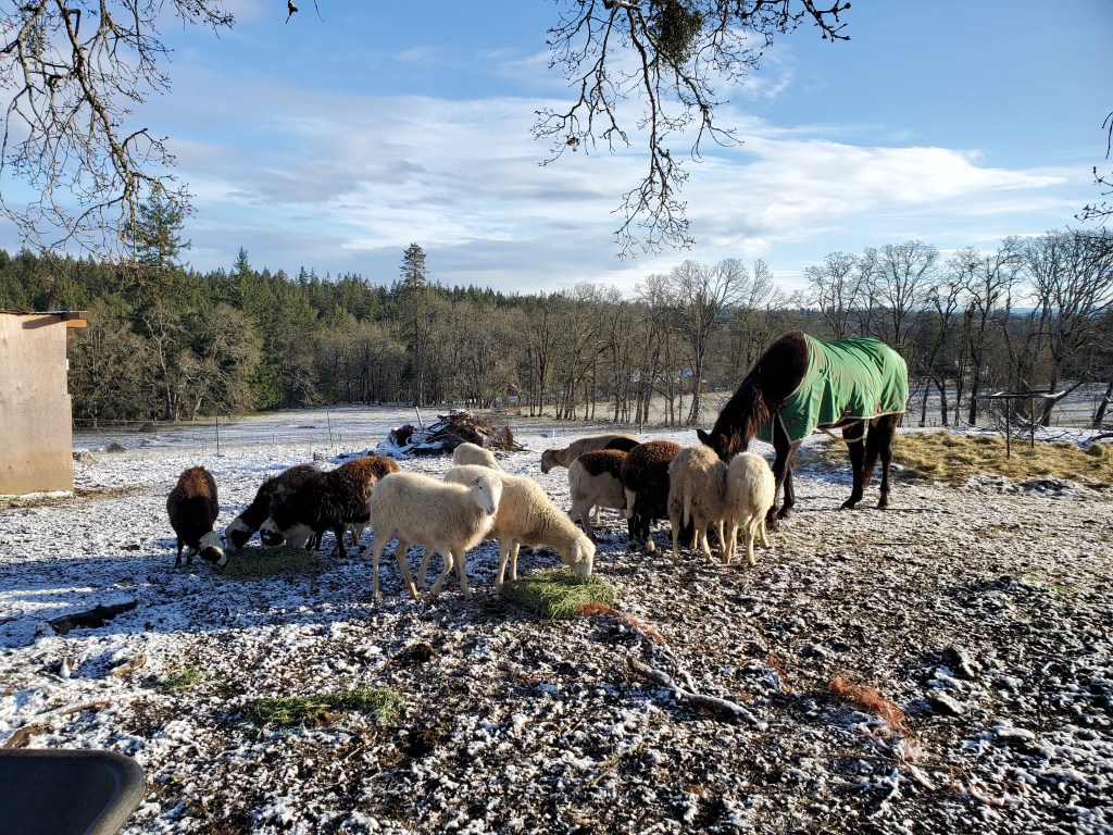 In other news – Thursday morning the sheep got to be fed outside since the ground was frozen!