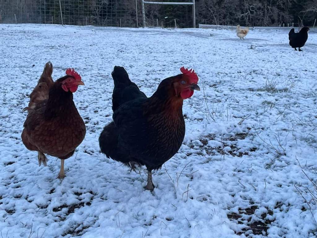 Shane’s chickens weren’t super keen on going out into the snow on Thursday morning. It took some coaxing!
