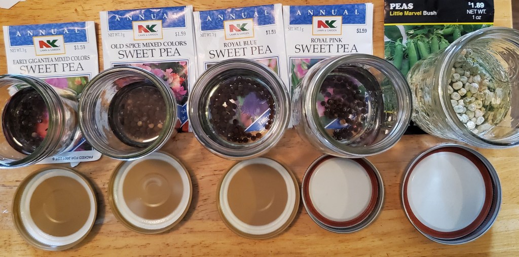On Wednesday we had a fairly sunny and dry day without wind. It was actually pleasant. I planted 22 year old Sweet Pea seeds (one packet for each porch post). I’ll either have 40 sweet pea plants going up each post or just a handful. We shall see! Later that same day, Morganna and I planted the Little Marvel Bush Peas in a raised bed.