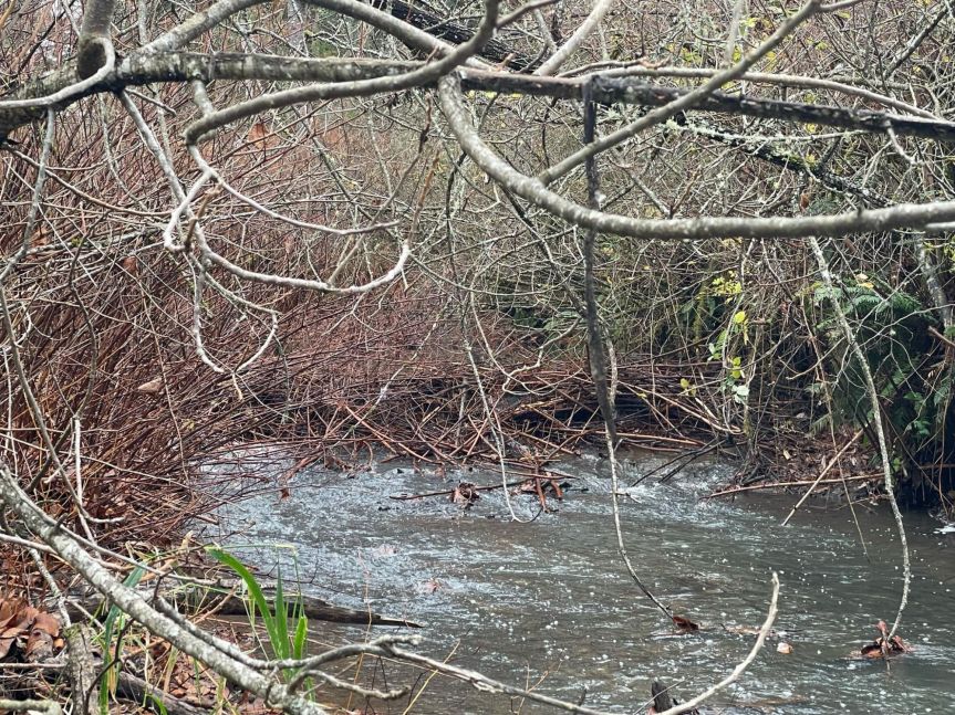 We went on a visit to the woods on the 16th. As we approached the creek, I noticed something was off. The creek was full but it wasn’t moving like usual. As I stood there and listened, I could hear it moving downstream so I knew something was blocking it between where we stood and where I could hear it. Shane went blasting through the brush along the creek and confirmed my suspicions. We had a beaver dam! It’s been years and years since the beaver had made their home in our little creek and we were thrilled! They just started the dam and we can only hope they get it big and secure before it floods down there. Flooding could happen at any second this time of year! We moved our trail-cam to try to get a good view of them building the dam too. The beaver tried to take our trail-cam on the 26-28th when the tree it was tied on seemed irresistible to it!