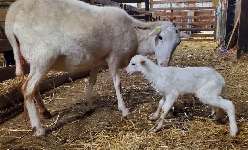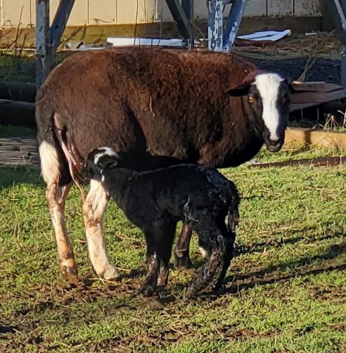 3 year old, Registered St Croix Ewe, Stella, had this 9lb ewe lamb out of Registered St Croix Ram, Titus. Good mama. Wish she’d had twins though!