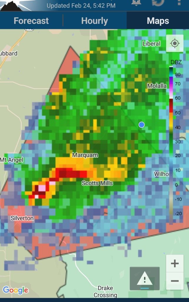 February 24th, in the early evening, we had a tornado warning! We’ve never had one here before so it was a bit exciting for a few minutes. Tornadoes are super rare but not unheard of in Oregon. My daughter has some trauma from the 2020 wildfires so was a bit scared when she heard the emergency alert on my phone. I just put her and my mom in the hallway then went to watch out the window to see if anything was coming (Shane was out feeding the sheep and pretty unconcerned haha). Nothing ever did, thankfully, but a few neighbors had some odd wind damage that makes us think, hmmmm. The next day the National Weather Service called me (I’m a registered weather spotter) to get feedback from the storms that day. First time that’s ever happened too! Kinda neat.