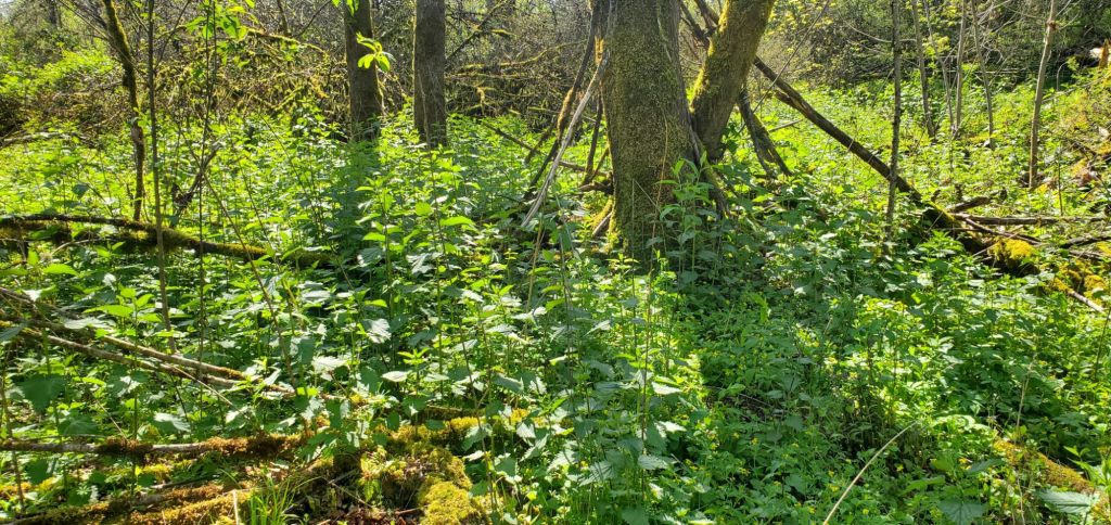 On April 15th, I went down into the “Cemetery Pasture” (named because of an old pioneer cemetery nearby) to check the fence before letting the sheep out. LOTS of stinging nettle down there so I know where to harvest it now!