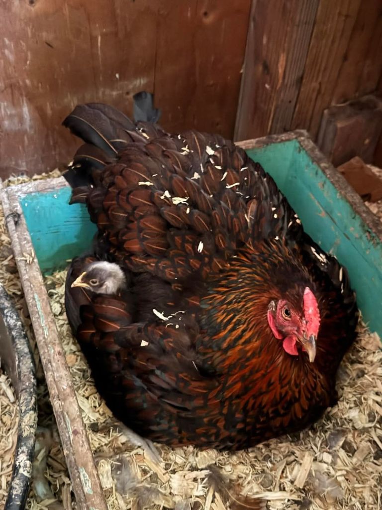 The chickens are laying eggs like crazy! One chick has hatched so far, though I wouldn’t be surprised if there are hens hiding somewhere on their own clutches of eggs.