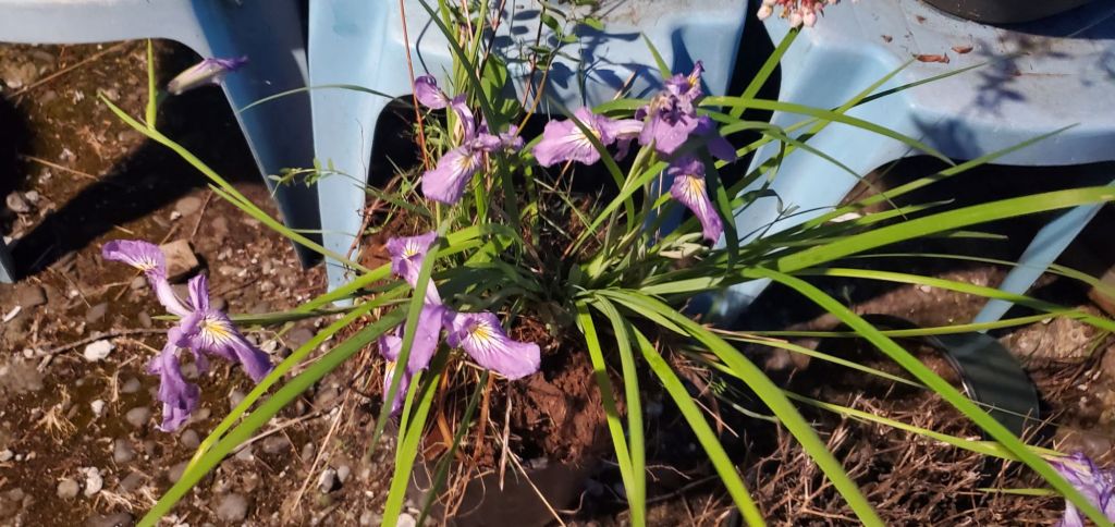 One of the neighbors had Siberian Iris growing wild on their property when we went there to get a rooster. She let us dig some up for my mother as a “get-well-soon” gift.