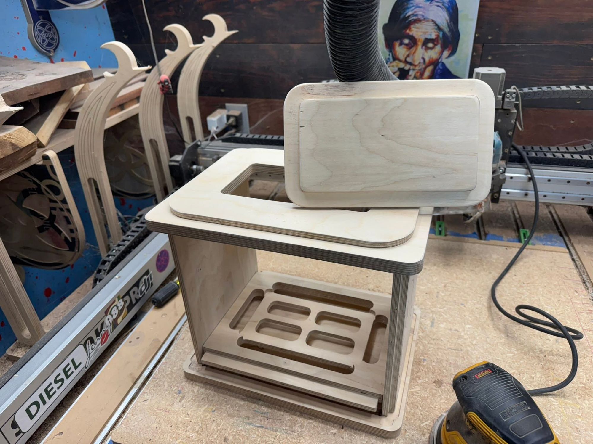 Shane has been busy making a mushroom growing box. This is made so a heat pad can be inserted in the bottom and the mushroom substrate bag can sit on top to form the mycelium. Once it’s ready then the lid changes to the plexiglass lid and the bag opens up to allow the shrooms to grow. If you have cats that like to sit on things they shouldn’t, just know, this box will hold up to it!
