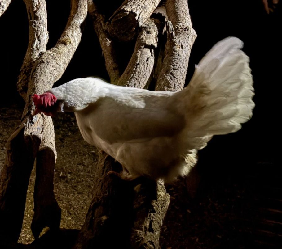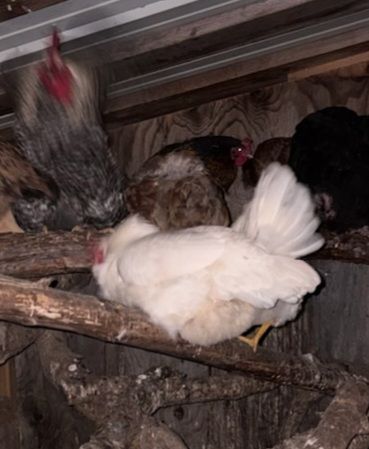 Ember has been wanting a white chicken for some time now (it’s a teenager thing). We hatched two out the last couple years and both were roosters and ended up eaten. I decided to surprise her on the 17th by getting a couple white Leghorn pullets from a neighbor. Early Christmas Present! Her pictures after we snuck them in the coop that night. Named Artemis and Daryl. LOL