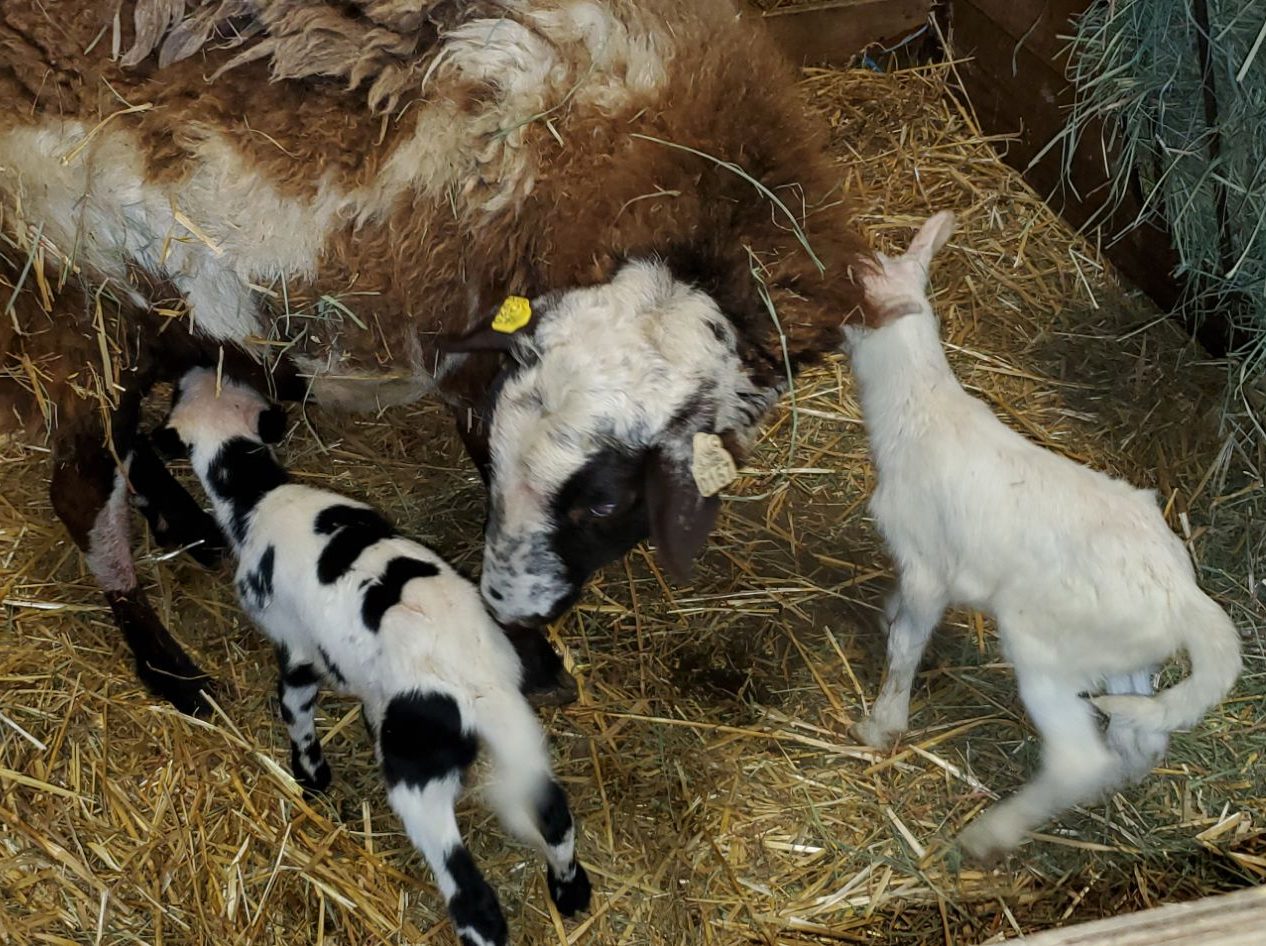 Gave birth to triplet ewe lambs 2026.